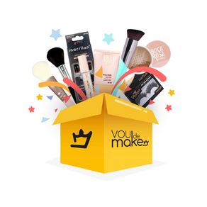 Na caixa pode conter: Batom, Blush, Sombras, Pincel, Base, Delineador, Pó, Corretivo, Skincare e outros produtos de maquiagem.
